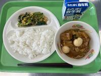 今日は、健康的な食べものの頭文字をとった「まごわやさしい」という言葉を紹介します。「まめ、ごま、わかめ、やさい、さかな、しいたけ、いも」からきています。「まめ」は豆類とその加工品、「わかめ」は海そう類、「しいたけ」はきのこ類のことで、その食材だけではなく仲間も含みます。今日の給食では、まめ(生揚げ)、やさい、わかめ(茎わかめ)、ごまで4つを満たしています。「まごわやさしい」の食材は、給食でもよく出る食べものです。今日は何が入っているかなと意識して食べてみましょう